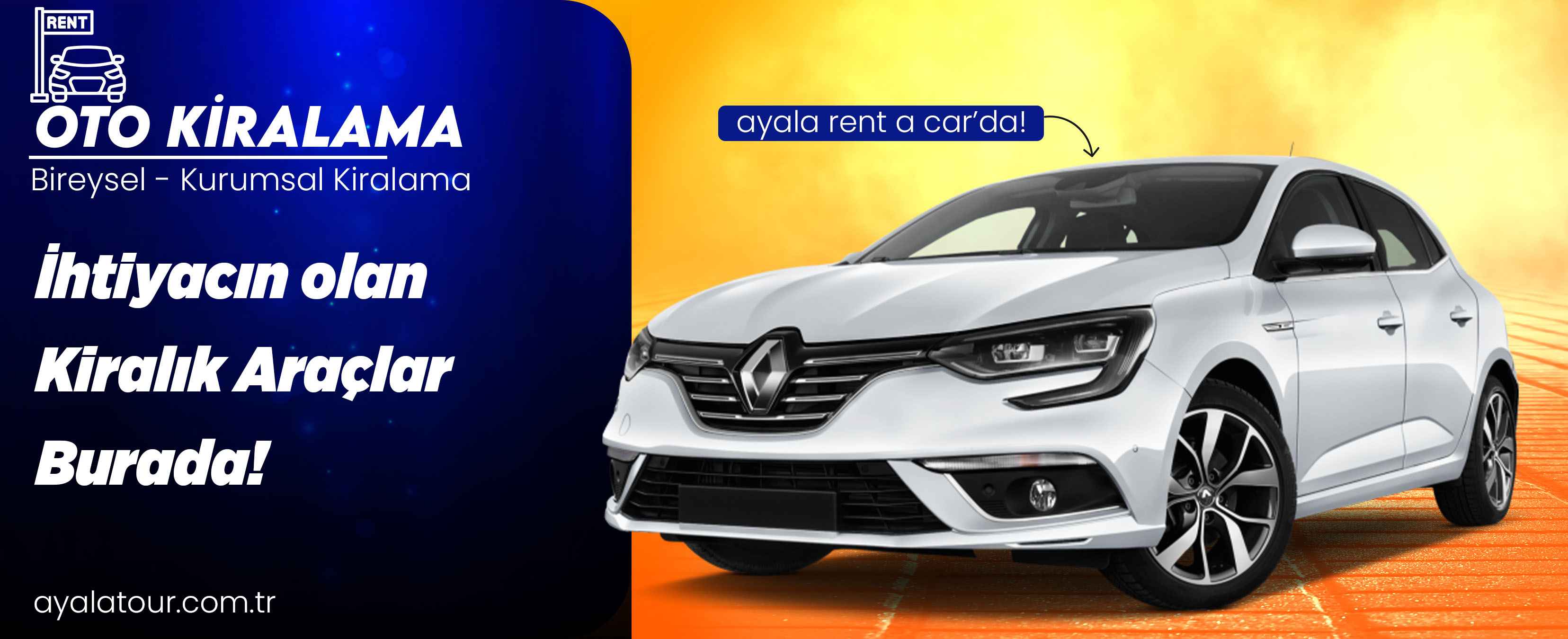 Rize Oto Kiralama - Ayala Tour, Rize ve çevresinde bireysel ve kurumsal müşterilerine güvenilir oto kiralama hizmeti sunmaktadır. Günlük, haftalık ve uzun dönem araç kiralama seçeneklerimizle konforlu, bakımlı ve sigortalı araçlarımızı müşterilerimizin hizmetine sunuyoruz.